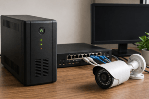 ネットワークカメラとは、インターネット回線を通じて映像を確認できる防犯カメラです。事務所や自宅からスマートフォンで状況を確認できるため、夜間の異常確認に役立ちます。ただし、インターネットに接続する機器であるため、パスワード管理やファームウェア更新などの情報セキュリティ対策も必要です。